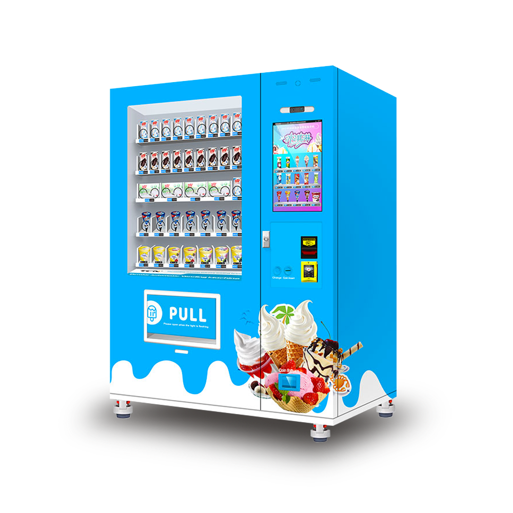 Vending machine specially designed for ice cream, popsicles, and cones thanks to its standard tray configuration with belts, spirals, and cone holders. Important: This configuration can be modified for any type of frozen product.